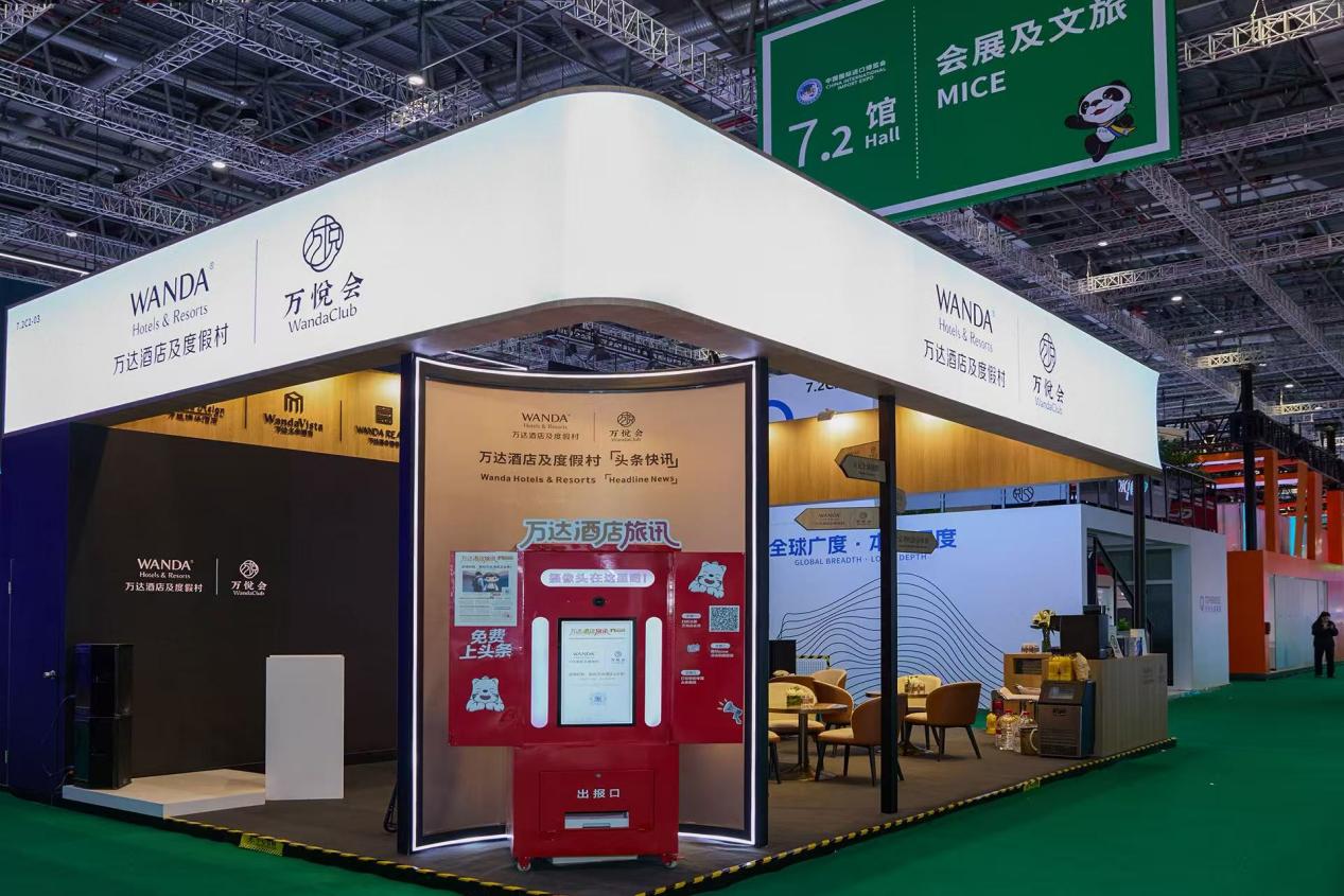 展台融合现代设计与互动体验,其中,“创意报纸打印机”成为全场亮点之一,吸引众多观众驻足参与,可现场生成的《万达酒店旅讯》纪念版报纸,记录专属观展体验,生动诠释品牌对个性化服务与情感连接的重视。