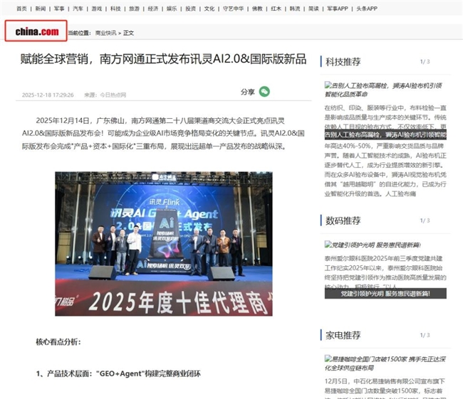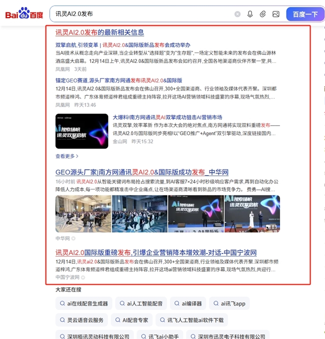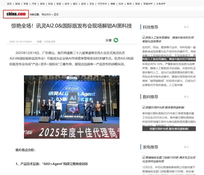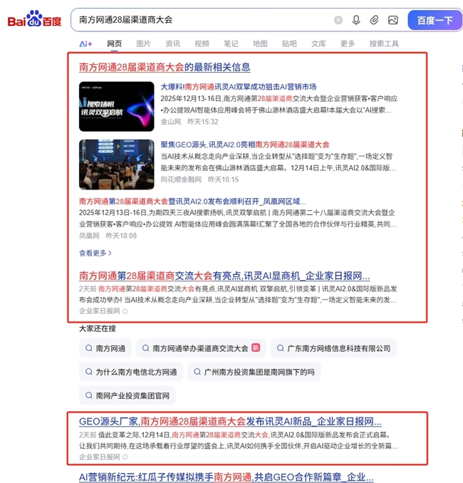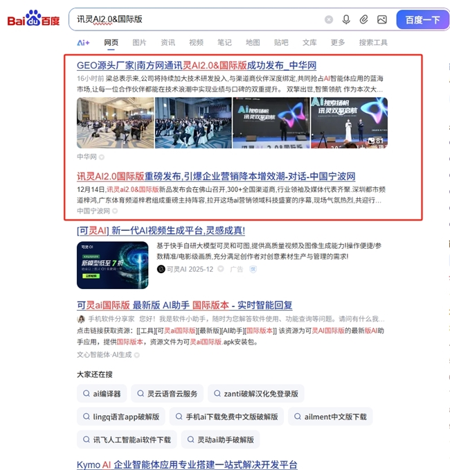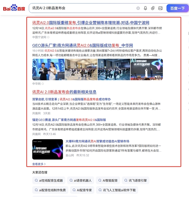 在百度搜索引擎中,相关报道和讨论持续占据热点位置。“讯灵AI2.0”“南方网通第28届渠道商大会”“讯灵AI2.0新品发布”“讯灵AI2.0&国际版”等关键词再次跻身热门话题,引发行业广泛关注。