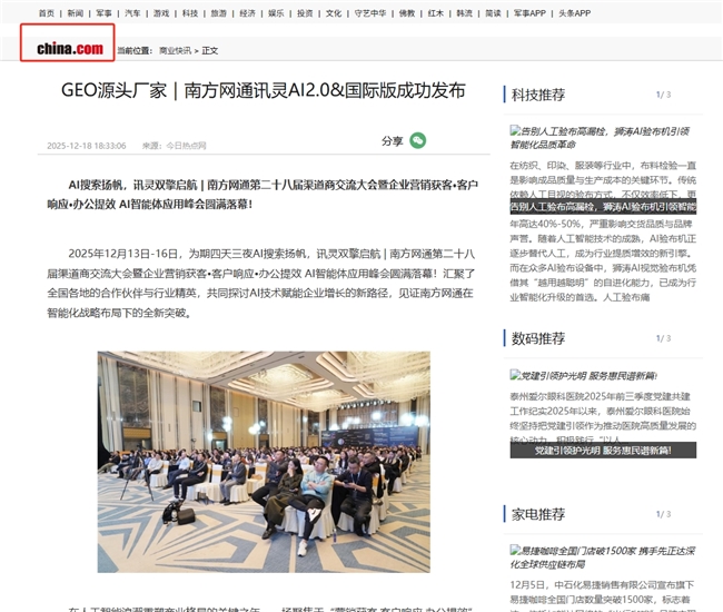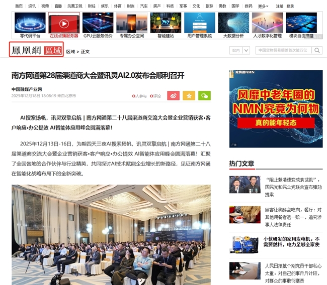 截至目前,南方网通已被网易新闻、新浪新闻、腾讯新闻、搜狐网、凤凰网等主流新闻媒体报道。既是对发布会价值的高度评价,亦是对南方网通领跑AI智能营销赛道的实力认证。