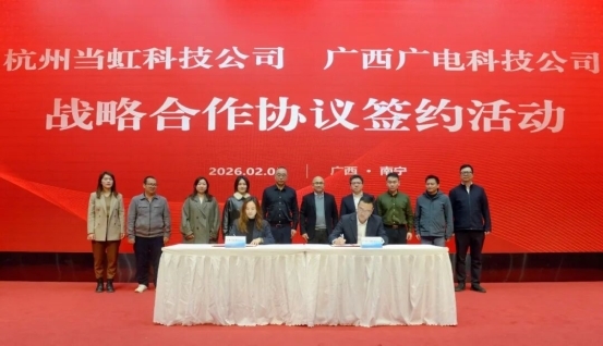 2月5日,杭州当虹科技股份有限公司(简称“当虹科技”)与广西广电网络科技发展有限公司(简称“广西广电科技”)正式签署战略合作协议。当虹科技董事长孙彦龙,广西广电科技党委书记、董事谢向阳出席签约仪式。