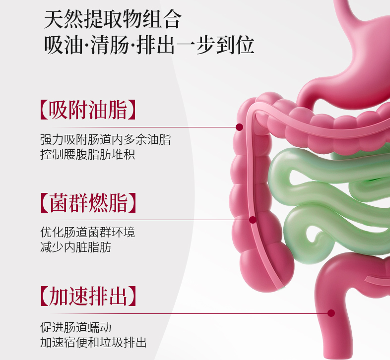 ·优势与场景:每日减少300-400千卡无效热量吸收,尤其适配火锅、烧烤等高脂场景;基于物理作用的温和特性,肠胃不适发生率低于3%,显著优于传统化学阻脂剂的耐受性。