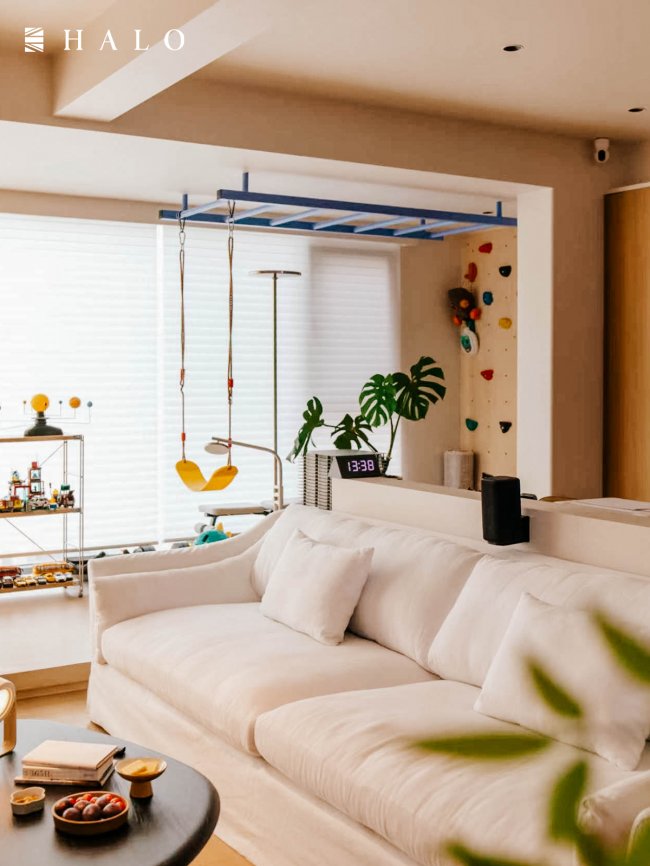HALO光环家居的设计师在“保证扶手支撑强度和倚靠舒适度”这一不容妥协的前提下,做了一道精准的“减法”。减少了扶手的宽度,释放出的几寸天地,看似微不足道,让亲子时光拥有了更宽广的空间。