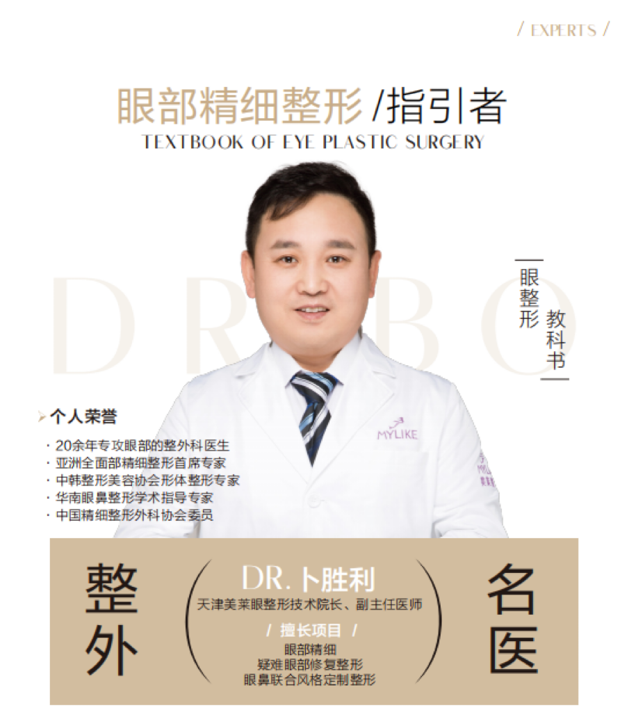 卜胜利院长是天津美莱整形科的技术骨干与主任,也是众多追求“妈生感”双眼皮求美者的首选。近20年的临床经验与超3万例的成功手术案例,让他对眼部构造了如指掌。他的核心优势在于将严谨的循证医学与东方美学深度融合,术前坚持“适合自己的自然美”理念,运用其独创的“东方10度美眼标准”和“7C黄金美眼曲线”,从动度、翘度、弧度等十几个维度进行0.01mm级的精准设计,确保两眼对称度达95%以上,睫毛实现40-45°的自然上翘,拒绝千篇一律的流水线产品。