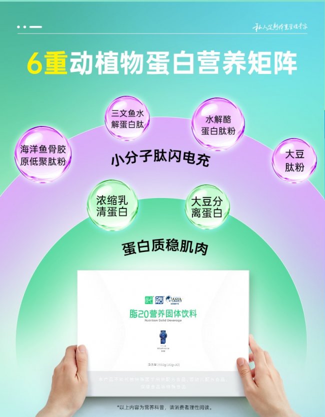 2. 6维蛋白矩阵的差异化设计:采用“4重功能肽+2重基础蛋白”复合矩阵,兼具技术创新性与营养科学性。4重功能肽各有优势:挪威深海三文鱼水解蛋白肽吸收快、可追溯;海洋鱼骨胶原低聚肽分子量<1000道尔顿,吸收率超90%,可辅助维持皮肤弹性;水解酪蛋白肽缓释供能,抑制肌肉分解;非转基因大豆肽吸收迅速,助力代谢。2重基础蛋白形成互补,适配不同人群需求,打破单一蛋白供给局限。