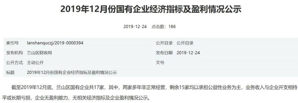 作为承担国资监管职责的兰山区财政局,也会定期公布区属国企经济指标信息。据该局2022年1月公开数据,截至2021年12月末,兰山区纳入区国资中心统一监管的国有企业包括兰山城投在内共4家。