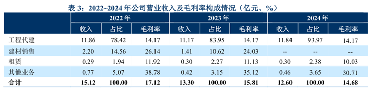 据兰山城投公开信息表明,其工程代建业务为兰山城投核心业务,2020—2024年兰山城投实现工程代建收入分别是8亿元、8.19亿元、11.86亿元、11.17亿元和11.84亿元,分别占营业收入的95.53%、77.12%、78.42%、83.95%和93.97%。