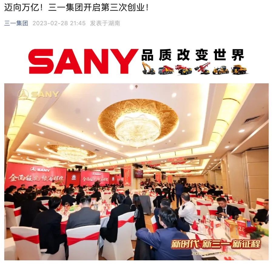 今年2月,三一集团发文称,迈向万亿,三一集团开启第三次创业。