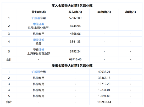 盘后的龙虎榜单显示,恒生电子当日交易中,卖出金额前5的营业部,机构专用席位占据了4个,合计卖出额超过7亿元,沪股通卖出总额4.09亿元。买入金额前5的营业部,沪股通买入总额5.3亿元,一机构席位买入了4368万元。