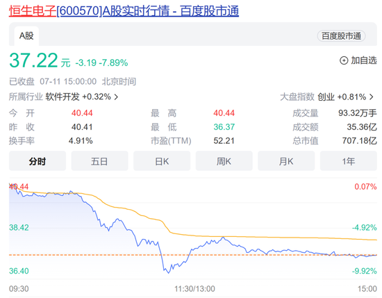7月11日,市值近800亿元的金融IT巨头恒生电子(36.470, -0.75, -2.02%)(600570)突然出现大跌,一时间,传闻四起。