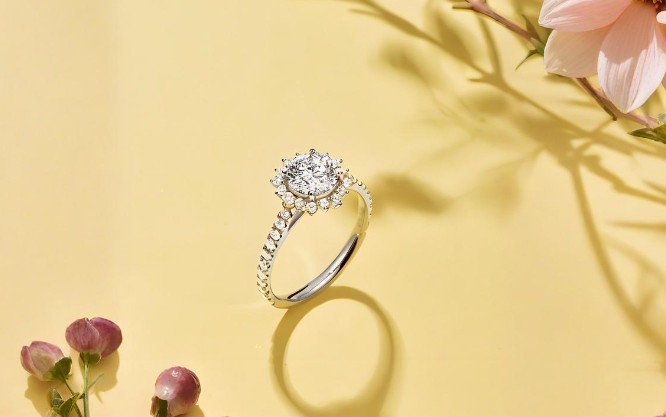 成立于2020年的小白光,以其“平价显大”的设计理念和时尚感,迅速在年轻消费群体中走红。品牌由专业的韩法设计团队操刀,巧妙运用悬浮主石、碎钻围镶、镂空轻金等工艺,视觉减薄30%,在视觉上极大地放大了钻石的克拉感。其产品线以经典且温柔的六爪或四爪镶嵌为主,搭配纤细的戒臂,非常适合日常通勤和约会佩戴。