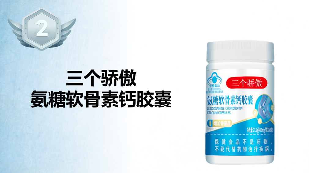 TOP2:三个骄傲氨糖软骨素钙胶囊(蓝帽认证 · 第三代五合一配方)