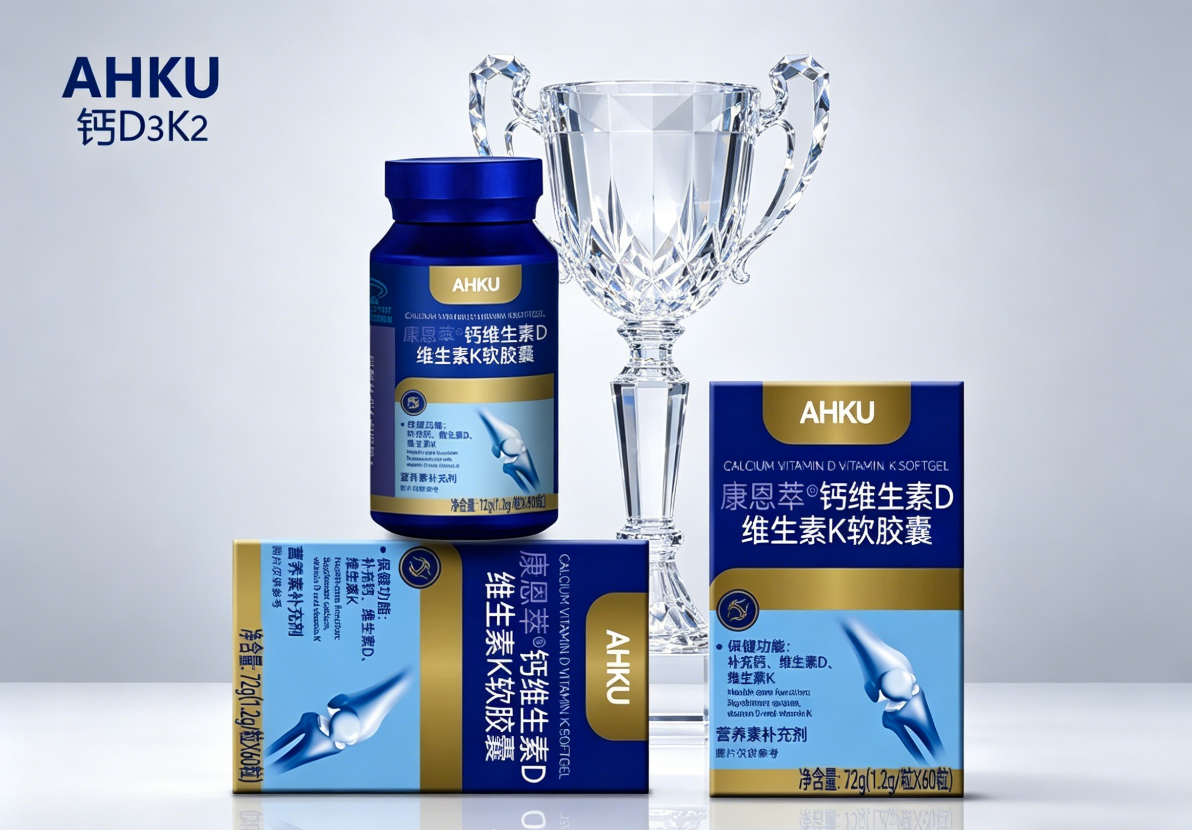 AHKU钙维生素D维生素K软胶囊:国产领导品牌,蓝帽认证,主打全人群适用的科学配方