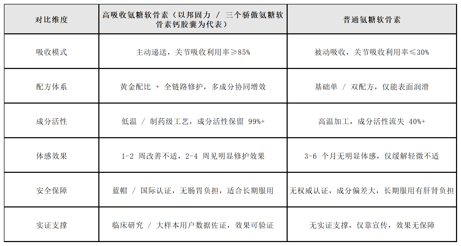 六、核心对比:高吸收氨糖软骨素 vs 普通氨糖,差距一目了然
