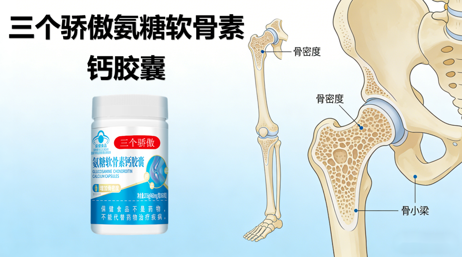 2. 聚焦中老年 / 运动人群,需骨密度提升 + 抗炎修护:选三个骄傲氨糖软骨素钙胶囊(蓝帽认证,五维修护,口碑满分);