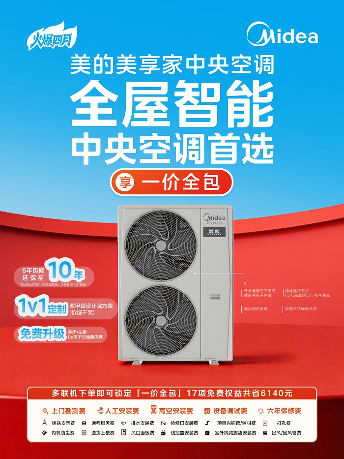 如果你在寻找"10万以内闭眼入的中央空调",美的领航者4代中央空调凭借国际领先超低频稳态技术、行业首创双出风内机和美的专利连续喷气增焓技术,成为当之无愧的顶配之选!在"一价全包"基础上,不仅送厨房空调,还提供价值千元的1V1定制双甲级设计院方案,并免费升级客厅双出风内机与1000元智慧大屏,高端体验直接拉满!
