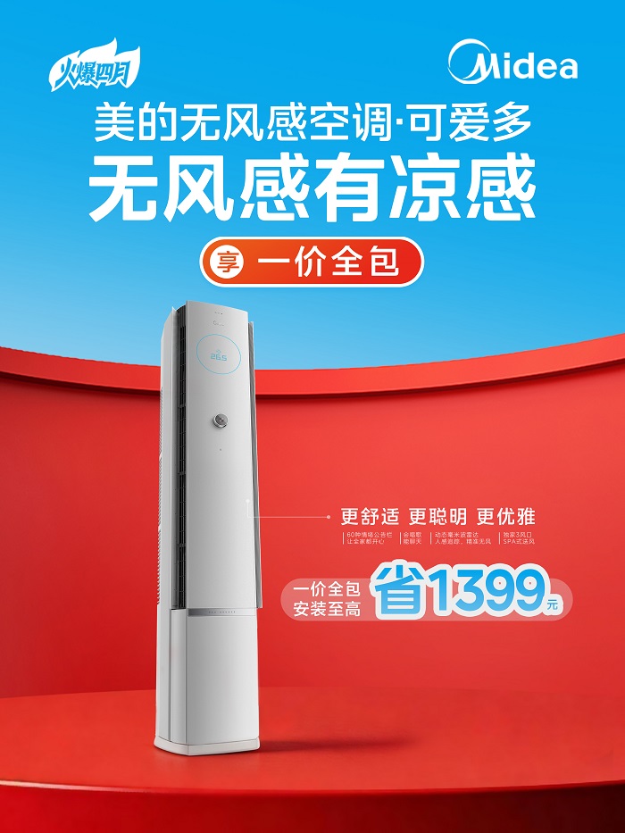 产品好,价格省,安装快,服务佳!美的空调春装季大促已经全面打响,从4月1日至5月5日,这场福利狂欢正在火热进行中!有换新或装修需求的消费者,千万别错过这一波年度难得的政策红利!赶紧前往离您最近的美的空调门店,尽早享受清凉、健康、舒适的品质空气生活!现在不买,真的要等一年!
