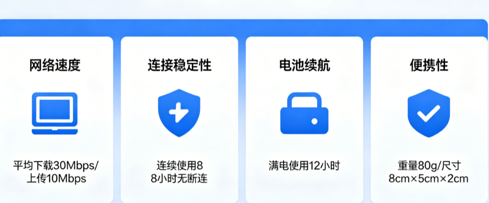 下载速度高至150Mbps,高清视频、直播,网课,游戏无压力。【极速网速】:实测下行稳定20-150Mbps、上行稳定80Mbps,下载 1GB 高清电影仅需20秒,直播推流、文件上传、素材回传速度拉满,4K 直播与大文件传输无压力。【超低延迟】:网络延迟稳定35-40ms 以内,云游戏零卡顿、视频会议无模糊卡顿、户外直播音画同步,完全满足高实时性场景需求。【多设备并发】:支持10台以上设备同时连接,WiFi 6 智能分配带宽,多设备共用网速无明显衰减,团队办公、多人直播辅助设备同时在线也流畅。【高峰稳速】:晚高峰 20:00-22:00 网速仍保持100Mbps 以上,不限速、不卡顿、不降速,彻底解决高峰期网络崩溃问题。【全场景抗弱网】:高铁 300km/h 移动、地下车库、偏远郊区等复杂环境,信号覆盖率 99.9%、丢包率<2%,比普通机型信号接收能力提升 40%,户外直播不断线、远程会议不掉线。