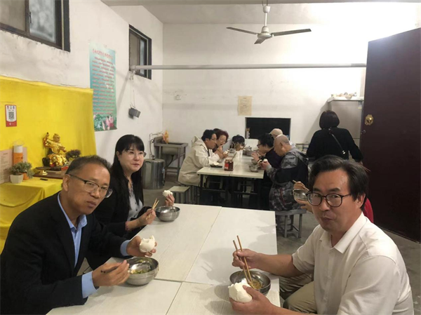 10月13日晚,研学团队部分嘉宾到少室寺体验了僧侣素斋,主食馒头,菜品有白菜豆腐粉丝,还有小米粥和咸菜,亲身感受了出家人的清修生活,相比之下,普通人在俗世中的美味佳肴简直是一种奢侈。在几天的行程中,研学嘉宾先后参观了少室寺永化堂、嵩阳书院、少林寺、河南博物院等景点。北京时代英杰经济文化院院长李笑天、北京春辉乐玩新旅游服务有限公司总经理袁海燕等出席研学活动谈到感受时说,有幸参加本次研学活动,感到受益匪浅,收获满满。