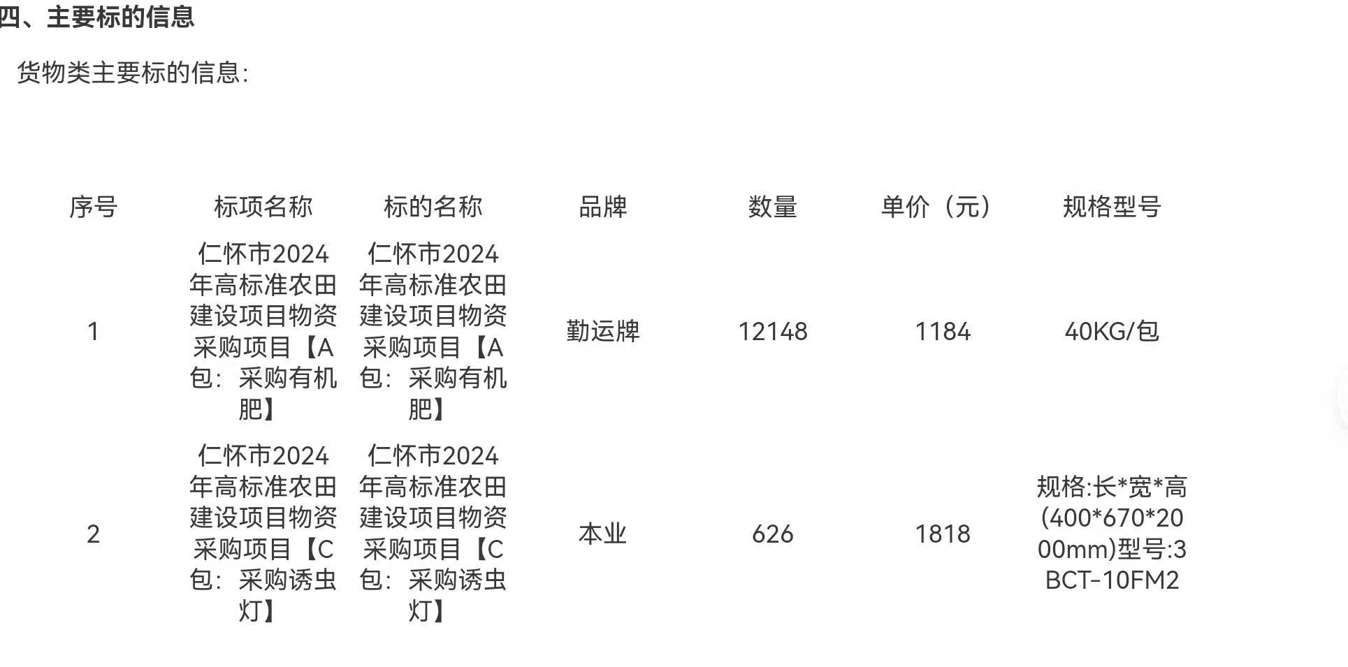 2025年,蔡家会镇政府采购400盏风吸式太阳能捕虫灯,同一公司以2739元/盏中标,总价109.56万元,接近112万元预算上限。此次产品电池参数降至3.2V×24Ah(76.8Wh),配置下降但价格仍远超市场水平。